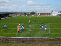 Park View is a tidy ground, surrounded by trees on three side, with an enclosure "the coo shed" on one side of the ground. There is a seated stand, fashioned from a lorry trailer, parked behind one goal. It looked splendid bathed in the evening sunshine. Despite arriving home just after 1am, it was a great way to round off the season at 'home'.